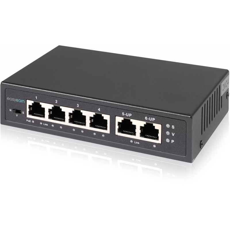Switch PoE EasyCam 4FE x POE + 2FE UPLINK 60W