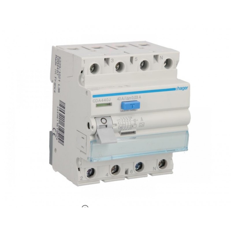 Wyłącznik różnicowoprądowy 3P+N 40A 0,03A 6KA typ A CDA440J HAGER