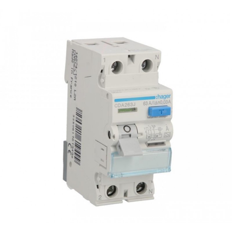 Wyłącznik różnicowoprądowy 2P 63A 0,03A typ A CDA263J HAGER