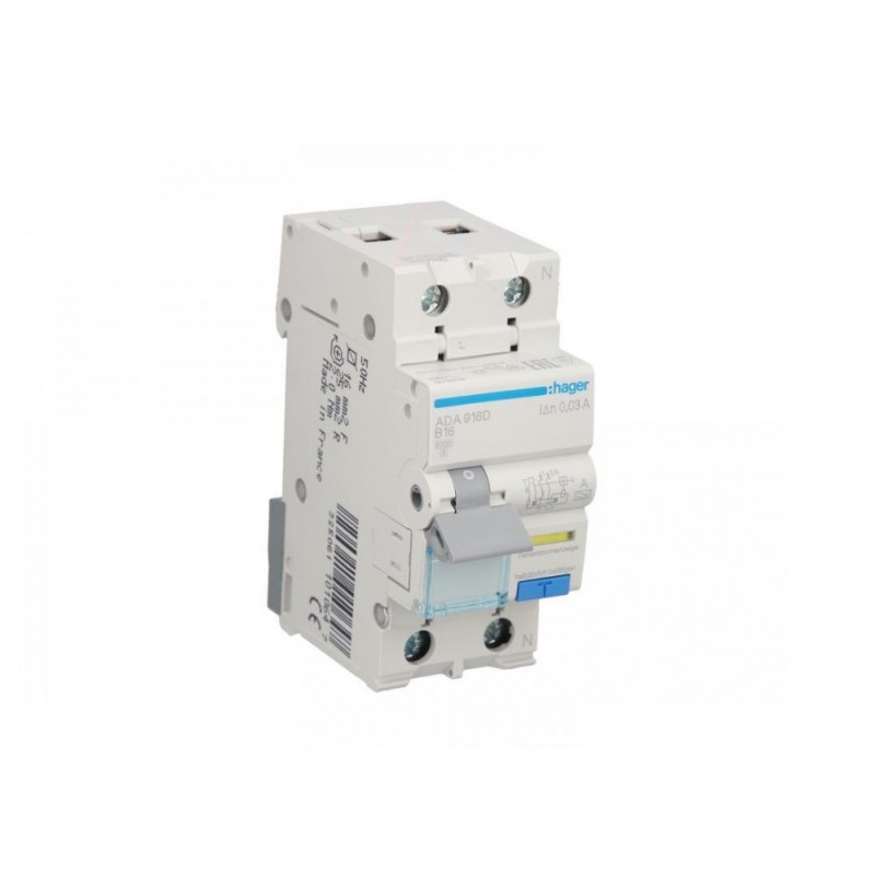 Wyłącznik różnicowonadprądowy RCBO 2P B16A 0,03A Typ A ADA916D HAGER