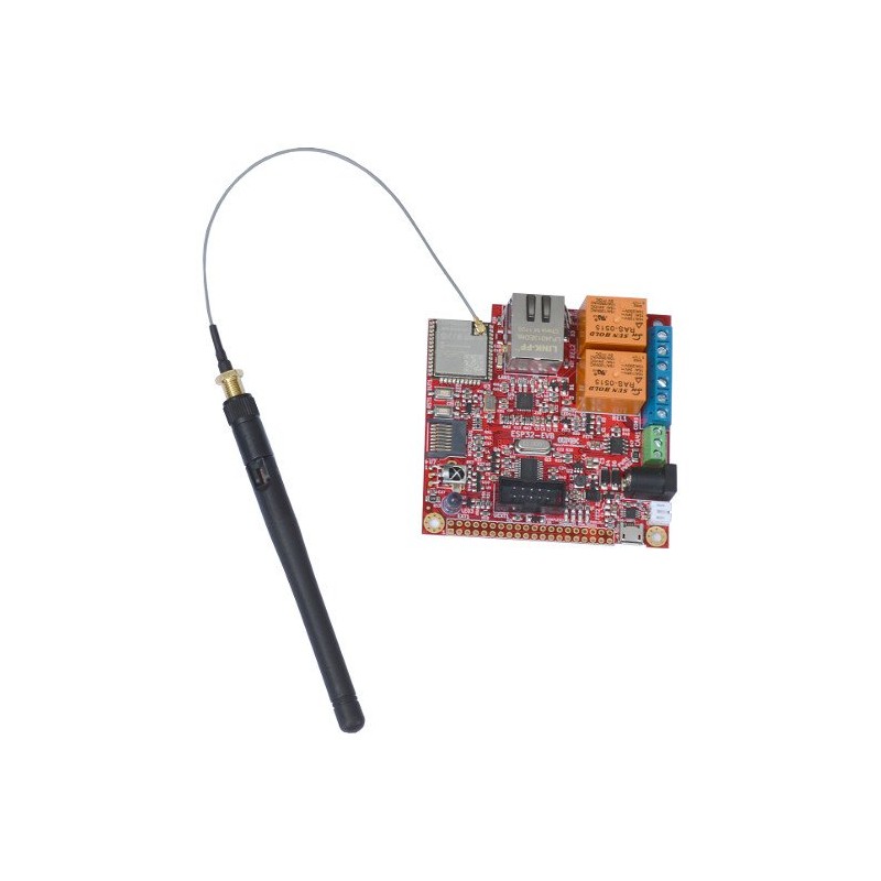 ESP32-EVB This is the ultimate IoT board with wired 100Mb Ethernet Interface, Bluetooth LE, WiFi, Remote control IR, and CAN connectivity. The board can operate with single LiPo backup battery like UPS as it has an internal LiPo battery charger (no step-up converter, so relays, CAN and USB power would not work over battery). Two relays allow you to switch power appliances on and off.