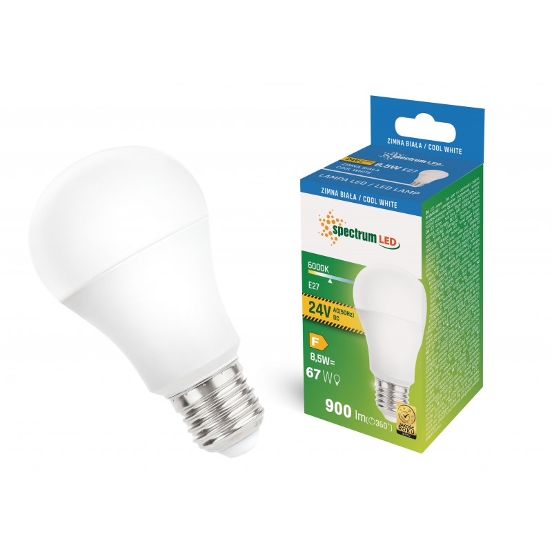 Żarówka LED Niskonapięciowa A60 8.5W 900lm 24V AC DC E27 6000K SPECTRUM WOJ+14659