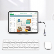 Kabel US378 jest wykonany z wysokiej jakości materiału — oplotu nylonowego. To nie tylko zapewnia wytrzymałość na uszkodzenia mechaniczne, ale także chroni przewody wewnętrzne przed zużyciem i skręcaniem. To kabel, na którym można polegać przez długi czas. Kabel ten jest zaprojektowany tak, aby nie blokować sąsiadujących portów, na przykład w laptopie. Jego kompaktowe wymiary sprawiają, że można go łatwo przenosić i używać w różnych miejscach, z zachowaniem pełnej funkcjonalności.