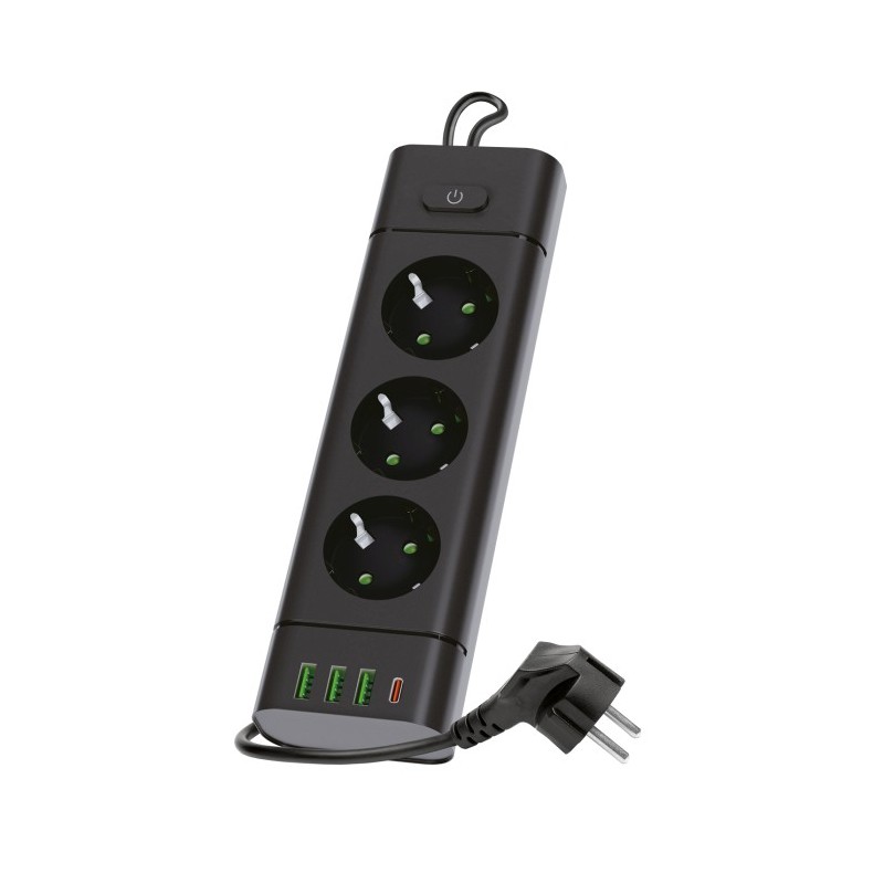 LINEA PRO XC to funkcjonalny przedłużacz zaprojektowany z myślą o współczesnych potrzebach użytkowników domowych. Wyposażony w 3 gniazda 230V oraz zestaw portów USB (3x USB-A, 1x USB-C), umożliwia jednoczesne zasilanie wielu urządzeń – zarówno tradycyjnych, jak i nowoczesnych elektronicznych.