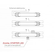 Może pracować ze statecznikiem magnetycznym przy zastosowaniu startera do Led (ZWORKI). Możesz przerobić swoją starą oprawę z świetlówkami liniowymi, jarzeniowymi na nowoczesne i energooszczędne świetlówki LED.