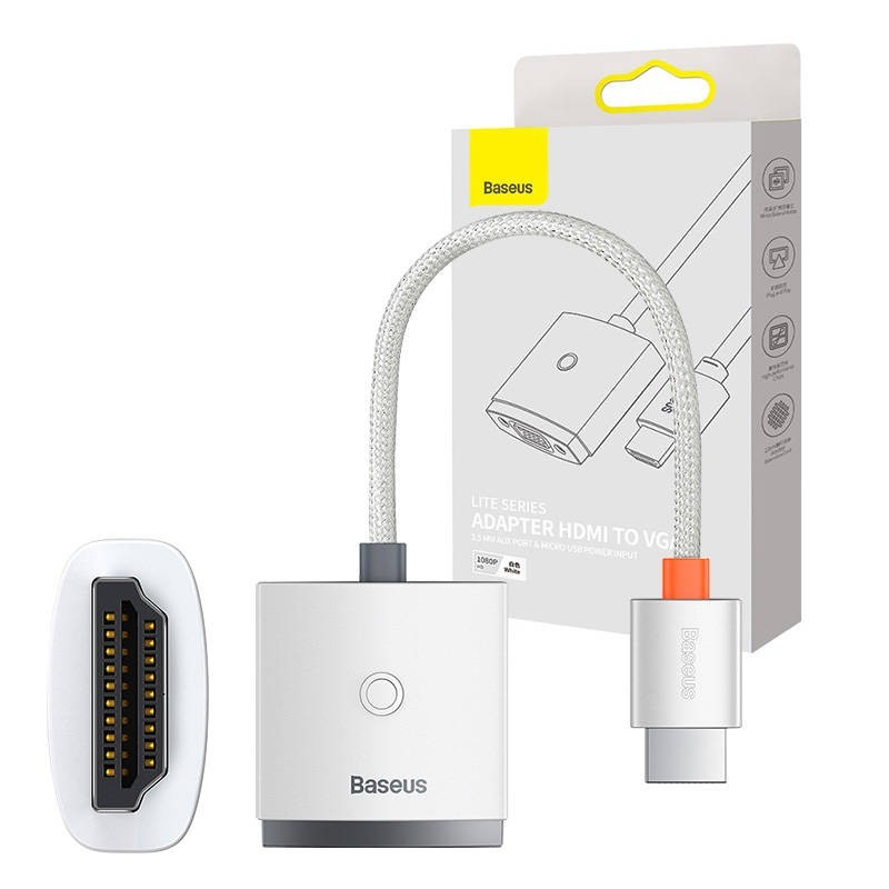 Adapter HDMI do VGA Baseus Lite Series z audio (biały) WKQX010102