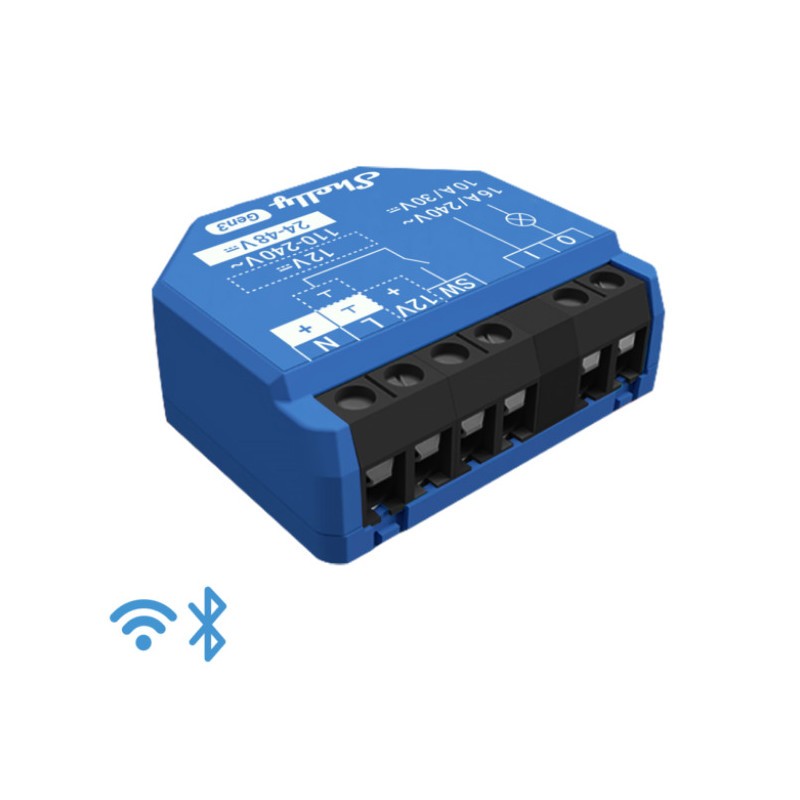 Оснащений новим процесором ESP-Shelly-C38F з пам’яттю 8 МБ, Shelly 1 Gen3 працює ще швидше та стабільніше. Пристрій підтримує Wi-Fi і Bluetooth, має вбудований вебінтерфейс, не потребує додаткового HUB і легко інтегрується з популярними платформами автоматизації та голосовими асистентами.