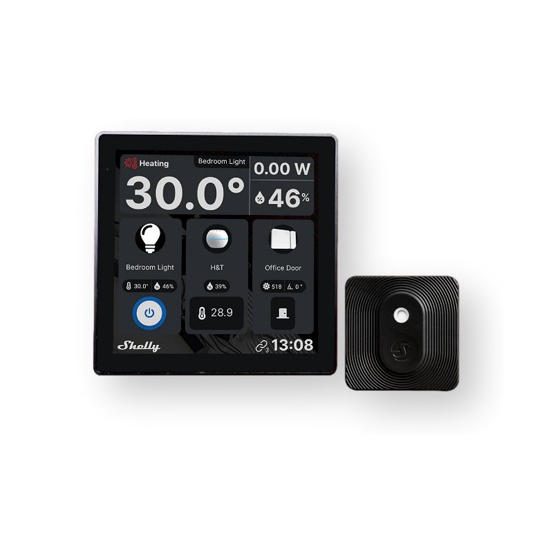 Shelly Wall Display – це панель керування розумним домом із 4-дюймовим кольоровим сенсорним дисплеєм. Дозволяє вмикати та вимикати пристрої, контролювати температуру, вологість та споживання енергії в кімнаті. У парі з датчиком BLU H&T може виконувати функцію кімнатного термостата.
